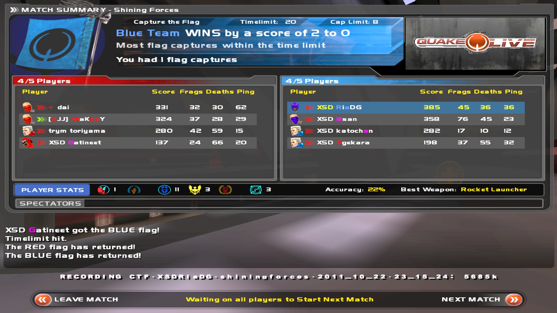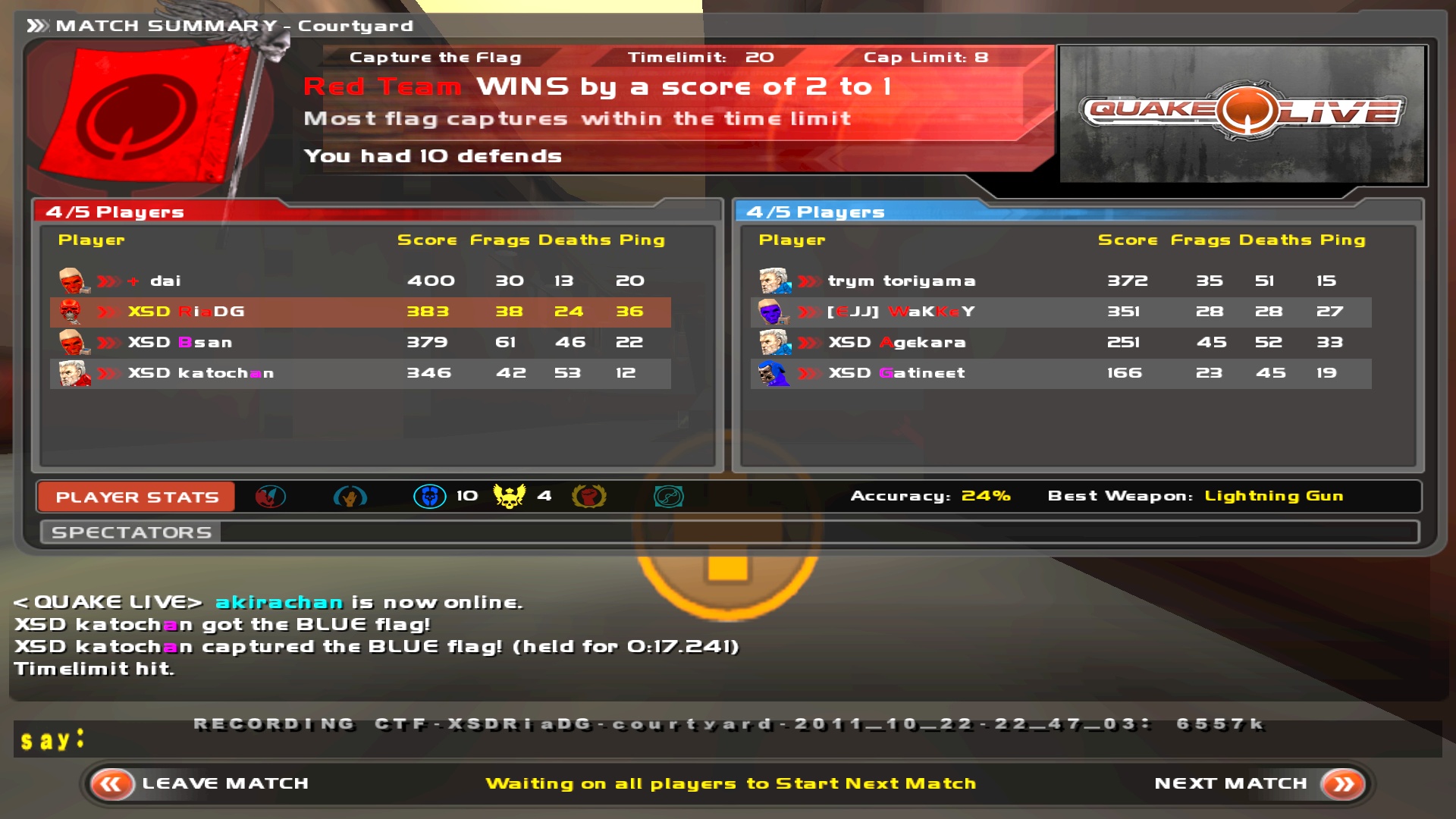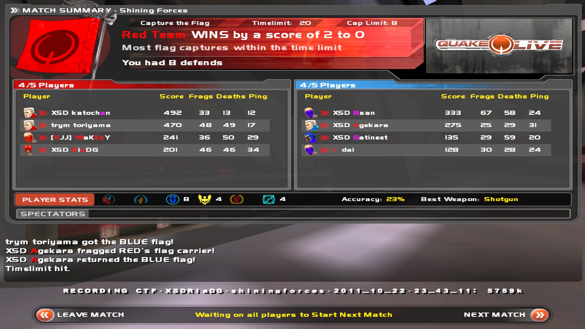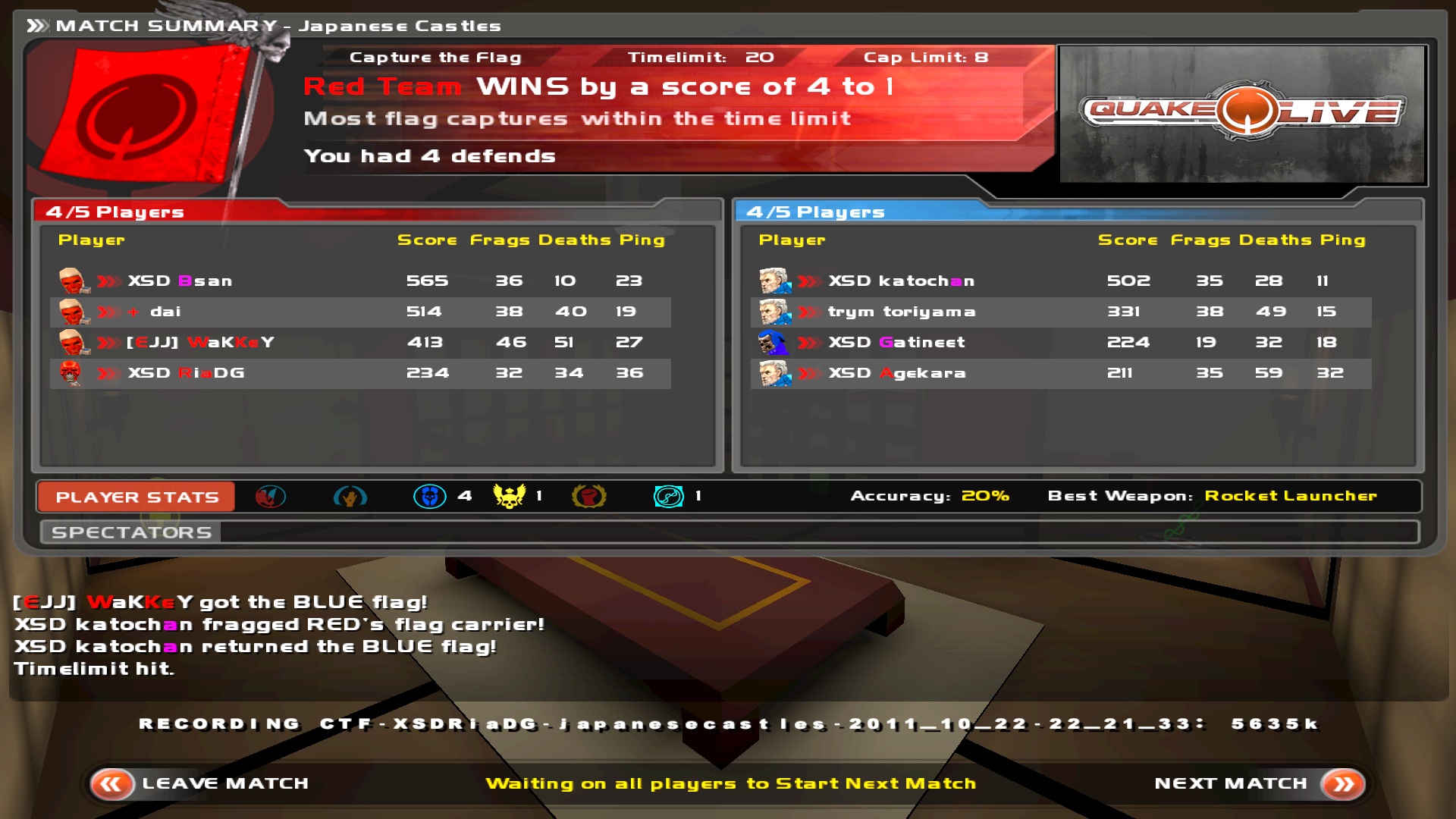 1戦目 赤4-青1 ※自分は赤