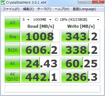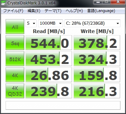 体感的には、Windows7の立ち上がりが少しだけ早くなった気はします。